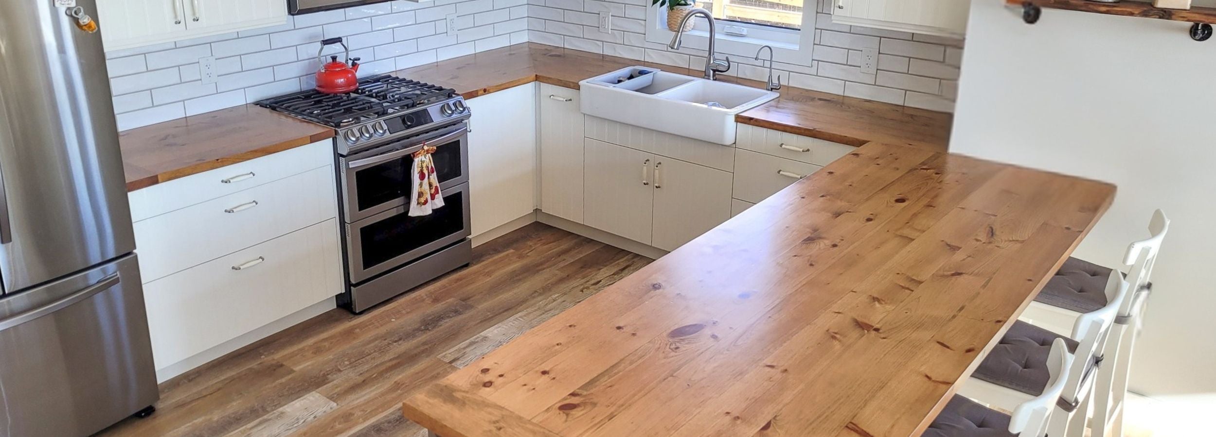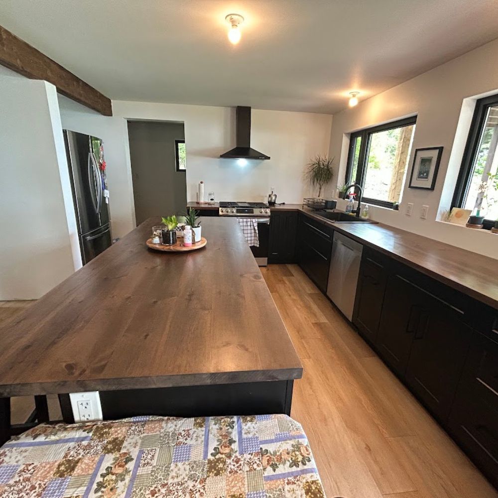 The Architectural Surface System includes fixed-dimension island tops, built-in surfaces, stair components, and structural wood elements designed for integrated architectural applications.